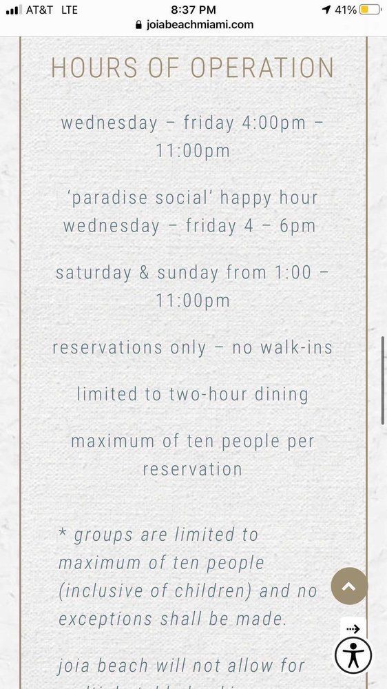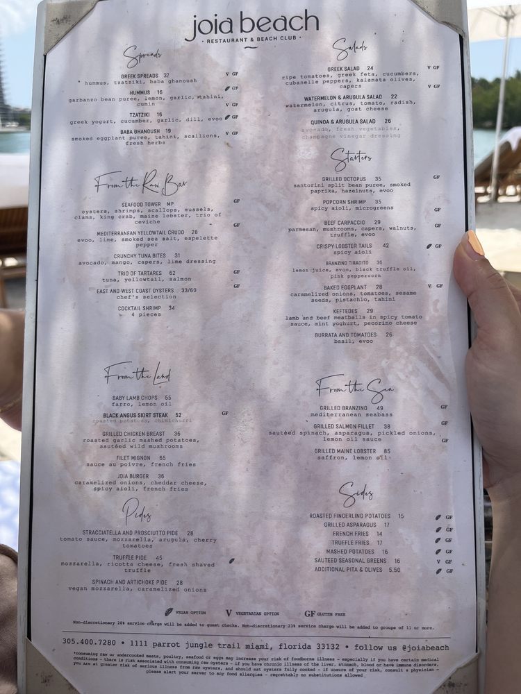 Come and experience the modern European cuisine at Joia Beach, located in Miami, FL. With a variety of options catering to pescatarians, vegans, and limited vegetarians, this restaurant offers a unique dining experience in a hipster, casual, and trendy setting. The outdoor seating provides a romantic and classy ambiance, perfect for a date night or gathering with friends. The menu boasts fresh seafood dishes like grilled octopus and bronzino, along with delicious cocktails like martinis. The attentive staff, led by servers like Roger, ensure a memorable dining experience. Joia Beach also offers valet and garage parking, along with free Wi-Fi and a full bar. Whether you're looking for a relaxing dinner or a lively happy hour, Joia Beach is a must-visit destination in Miami.